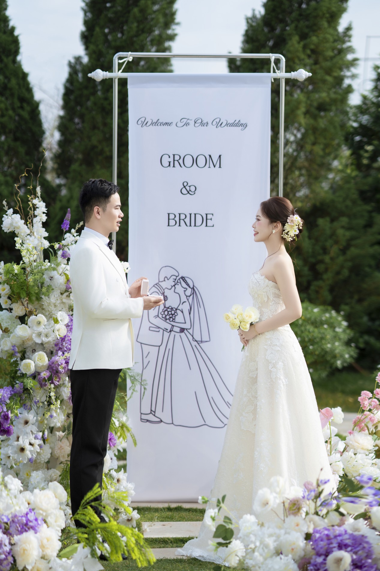 Tình yêu trong ngày cưới không chỉ là khoảnh khắc hai người nắm tay bước vào lễ đường, mà là hành trình dài được gói gọn trong một ánh nhìn. Đó là sự rung động đầu tiên, những lần bất đồng rồi lại hiểu nhau hơn, những ngày cùng cố gắng vì tương lai chung. Trong ngày cưới, tình yêu hiện diện trong nụ cười an yên của cô dâu, cái siết tay vững chãi của chú rể và ánh mắt hai người dành cho nhau — ánh mắt chứa biết bao kỷ niệm, lời hứa và niềm tin. Tình yêu ấy không phô trương, chỉ âm thầm lan tỏa, chạm tới trái tim của từng người có mặt. Đó là khoảnh khắc hai trái tim chọn nhau một lần nữa — không phải vì hoàn hảo, mà vì muốn cùng nhau trưởng thành. Là lời hẹn ước sẽ ở bên nhau qua mọi thăng trầm, cùng xây dựng tổ ấm trọn đầy, cùng giữ gìn sự tử tế và dịu dàng của hôm nay đến mãi sau này. Tình yêu trong ngày cưới chính là vậy: giản dị, chân thành và đủ lớn để trở thành điểm khởi đầu cho một chặng đường mới thật đẹp.
